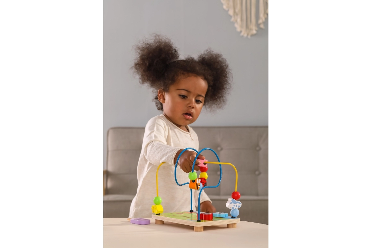 Kontrastlegetøj til nyfødte, knitrebøger og tekstilbøger, ophængt legetøj til barnevogn og tremmeseng, musiklegetøj, aktivitetstæpper og legebøjler giver sjov læring hver dag. Sensoriske bolde, stabelkopper, bløde klodser og enkle puttekasser understøtter naturligt fin- og grovmotorik, hånd–øje-koordination samt den første læring om former, farver og teksturer. Montessori-redskaber guider børn mod selvstændighed og tålmodighed.
