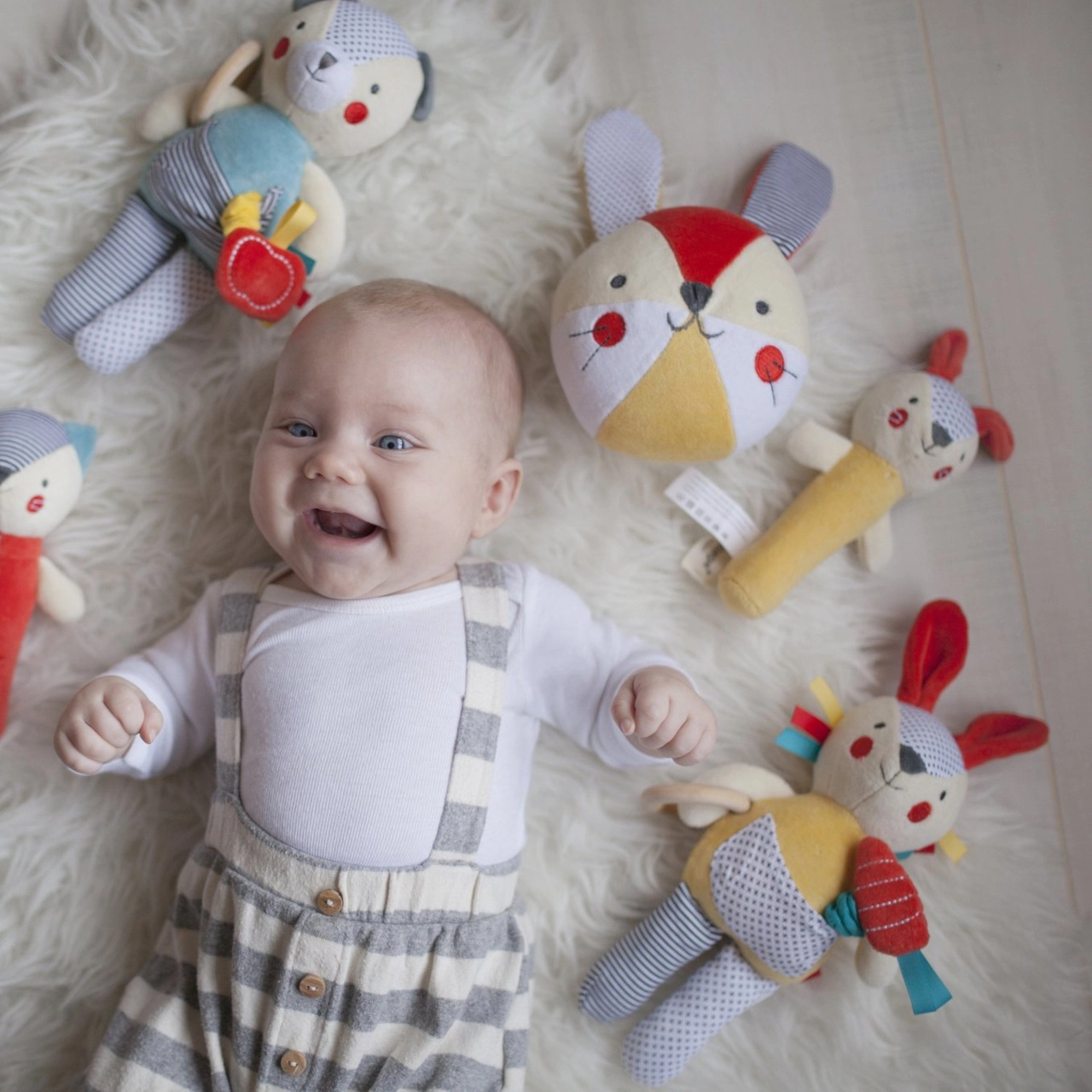 De første smil, de første berøringer og en endeløs nysgerrighed – sådan begynder de allermindstes eventyr. Legetøj til de mindste til babyer, spædbørn og tumlinger er designet med fokus på sikkerhed, certificerede materialer uden BPA og ftalater og afrundede kanter. Bløde plysdyr, silikonebideringe, trærangler og tekstilbøger stimulerer nænsomt hørelse, syn og berøring og skaber ro og trivsel.