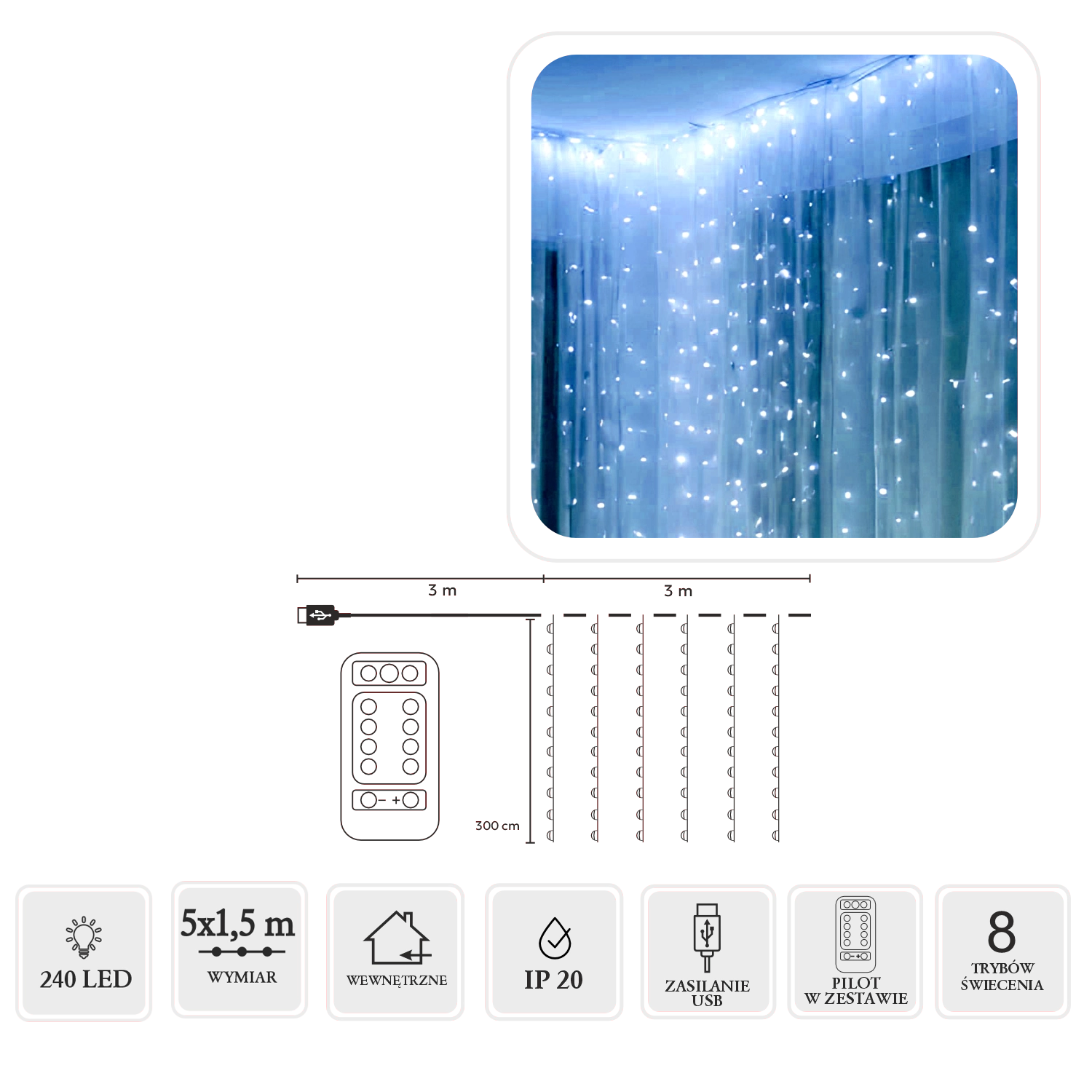 Udvalgte modeller tilbyder praktiske funktioner for nem betjening: timer (f.eks. 6/18 t), hukommelse af sidst anvendte tilstand, fjernbetjening og mulighed for dæmpning. Forskellige længder og antal LED, flere lysprogrammer (kontinuerligt lys, wave, flash, twinkle) samt strøm via USB eller 230 V giver dig frihed i installationen. Til udendørs dekorationer får du glæde af IP44/IP65 alt efter model, robuste kabler og sikker lavspænding – LED-gardiner egner sig til altan, terrasse og facade.