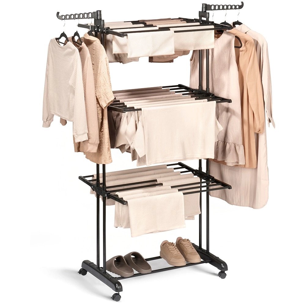 Til smart udnyttelse af pladsen findes vægmonteret tørrestativ, lofttørrestativ, tørrestativ over badekarret eller radiatortørrestativ; udendørs vil du sætte pris på et roterende udendørs tørrestativ og en indrullelig tørresnor. Sammenklappelig konstruktion, justerbar højde og tørreflade på 15–60 m klarer skjorter, håndklæder og sengetøj; et opvarmet tørrestativ fremskynder tørringen på kolde dage. Skridsikre fødder, UV-bestandige snore og solide profiler giver stabilitet, sikker tørring og nem installation.