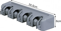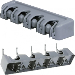 En praktisk vægmonteret organizer, der holder dit hus- og haveudstyr pænt på plads. Den tilbyder 4 holdere til børster, mopper eller stave og 5 kroge til småting. Nem at montere på væggen, og takket være smarte klemmeanordninger passer den til forskellige stangdiametre. Ideel til bryggers, garage, værksted, køkken og til fiskestænger.