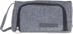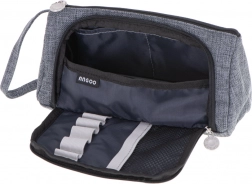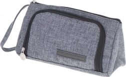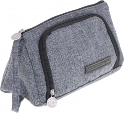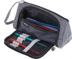 Universelt 3-i-1 penalhus i elegant grå farve, der fungerer som skoleetui, kosmetikpung og rejseorganisator. Tilbyder to rum, praktiske lommer og elastiske stropper for perfekt overblik. Takket være slidstærkt materiale, lynlås og håndledsstrop er det ideelt til skole, rejser og kontor.