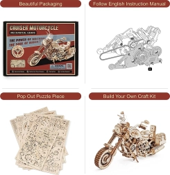 RoboTime 3D mekanisk motorcykel-byggesæt i træ – cruiser