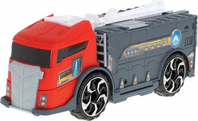Transportér de små biler til indsatsstedet med denne brandbil. Den integrerede transporter gør det muligt at transportere to medfølgende modelbiler, som nemt kan lastes via ramper. Børn kan også prøve at bevæge den skydelige stige, hvilket tilføjer endnu et niveau af interaktivitet.