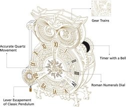 Bygges0;ttet indeholder 161 pr0;cist sk0;rede dele, der muligg0;r et detaljeret kig p0; penduls funktion, flugtmekanisme og gearværk. Den praktiske elektriske drivmekanisme sikrer n0;jagtighed, mens en 30-minutters minutur tilbyder en praktisk tidstager. Hele s0;ttet leveres usamlet med en detaljeret vejledning, hvilket sikrer hurtig montering selv for begyndere.