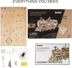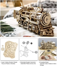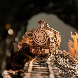 Oplev spændingen ved at samle denne unikke 3D-model af et trælokomotiv. Med fjederdrevet motor bevæger toget sig rigtigt, mens dampfløjten tilføjer autenticitet. Modellen er designet til nem montering uden lim med præcist udskårne dele af finér.