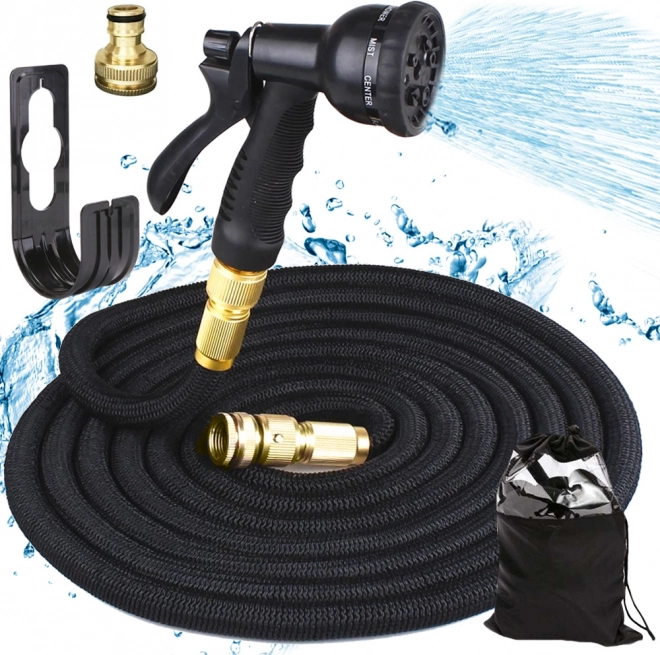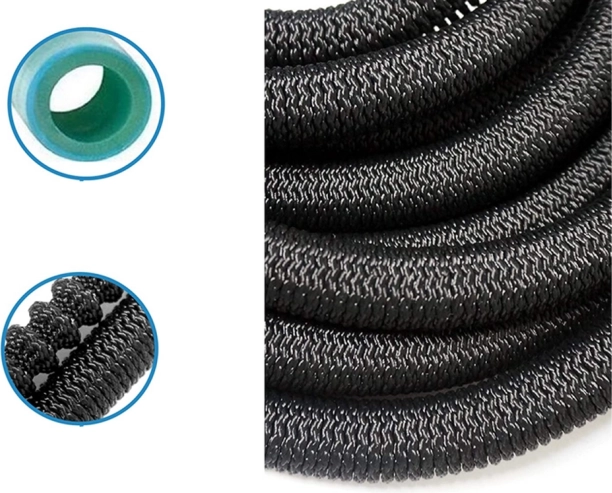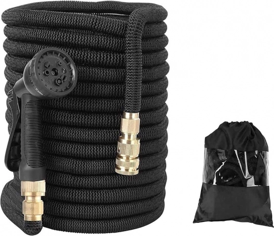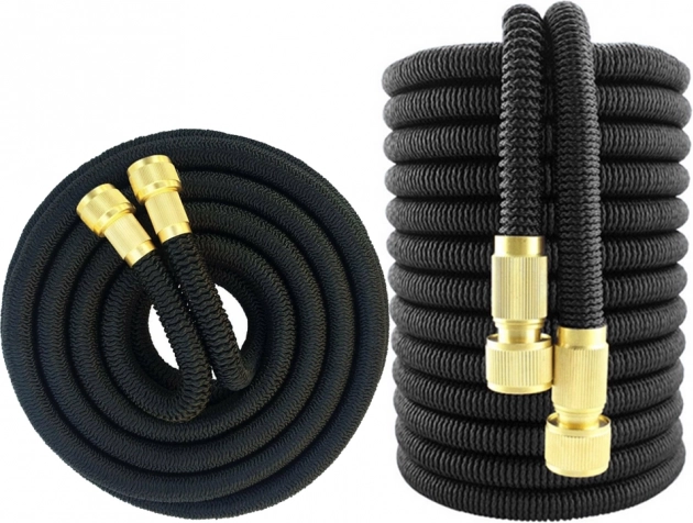 Denne slange forlænger sig til tre gange sin oprindelige længde, når den fyldes med vand, hvilket giver nem håndtering og pladsbesparelse.