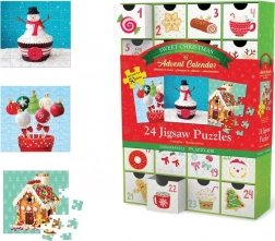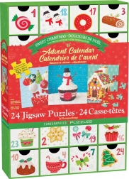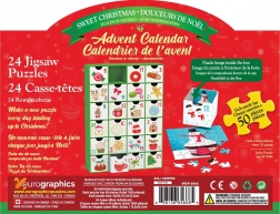EUROGRAPHICS adventskalender “Søde julegodter” forvandler december til en legende tradition. Hver af de 24 skuffer rummer et kvadratisk puslespil med 50 brikker og lækre motiver af konfekt og slik. Billederne måler 12,5 × 12,5 cm, og en forlæg er trykt på bagsiden af hver skuffe for nem samling.