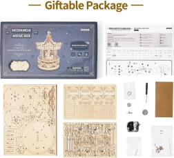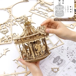 Når det er blevet samlet, vil automaten pryde din hylde, og dens detaljerede design vil begejstre dig. For at gøre øjeblikkene under samlingen mere behagelige kan du spille en romantisk melodi takket være den kvalitative 18-toners boks lavet af japanske komponenter.