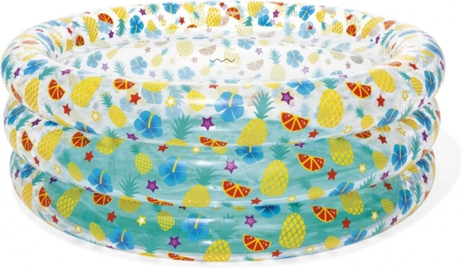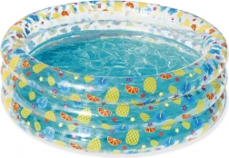 Denne oppustelige børnepool fra BESTWAY med gennemsigtige sider og farverigt frugtprint bringer sommerstemning og masser af vandsjov til haven. Med sine kompakte mål passer den også i mindre områder, og efter tømning opbevares den let.