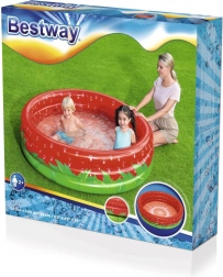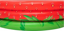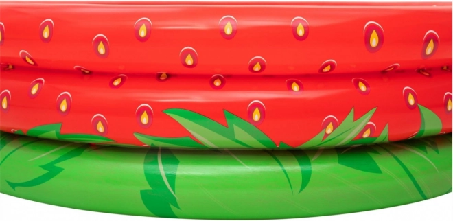 Jordbærdesignet med markant rød og grøn farve fanger blikket og forvandler enhver have til en vandlegeplads. Poolen har et volumen på cirka 390 l og giver derfor god plads til både leg og afkøling på varme dage. Takket være den solide PVC-konstruktion og oppustelige vægge er den komfortabel, stabil og behagelig også for mindre børn.