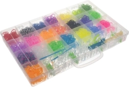 Praktisk arrangør med rum – Alt er pakket i en gennemsigtig case med 23 rum. En overskuelig organisering forhindrer blanding af elastikker.