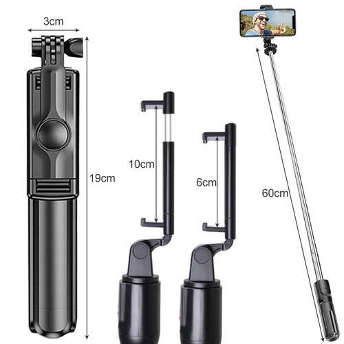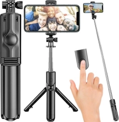 Kompakt selfiestang og stativ 2-i-1 med aftagelig Bluetooth-fjernbetjening, der lader dig tage stabile fotos og videoer hjemme og på farten. Tilbyder teleskopisk forlængelse op til 60 cm, 360° roterende telefonholder og trådløs udløserstyring til Android og iOS med rækkevidde på op til 10–15 m. Den lette konstruktion af aluminium og plast passer i både håndtaske og rygsæk.