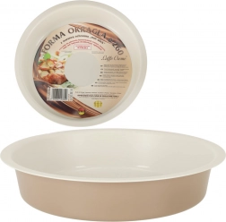 Denne runde bageform med glatte sider og bund er et fremragende valg til dine køkkenbehov. Den er designet til brug i både gas- og elektriske ovne, men er ikke egnet til opvaskemaskine. Formen suppleres af et moderne design i kaffefarve med mælk.
