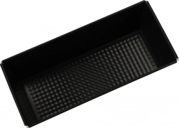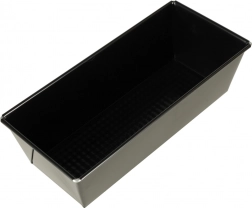 Denne sorte rektangulære form er fremstillet af lavkulstofstål med en holdbar non-stick belægning. Glatte sider og tekstureret bund sikrer fremragende varmefordeling og nem udtagning uden fastbrænding. Forstærkede hjørner med tråd hjælper med at bevare formen selv ved hyppig brug.