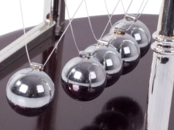 Oplev den beroligende rytme og fysikkens skønhed. Newtons vugge demonstrerer tydeligt loven om bevarelse af bevægelsesmængde og energi – bevægelsen fra én kugle overføres til den næste og skaber en fascinerende, jævn bevægelse. Ideel til korte pauser i løbet af dagen og som et iøjnefaldende indslag i indretningen.