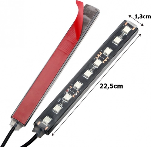 Installationen er hurtig og ren – brug blot dobbeltklæbende 3M-tape. Strømforsyning via 12 V cigarettænderstik med praktisk tænd/sluk-knap. Belysningen husker den sidst valgte farve efter frakobling af strøm, så du altid vender tilbage til din favoritindstilling.