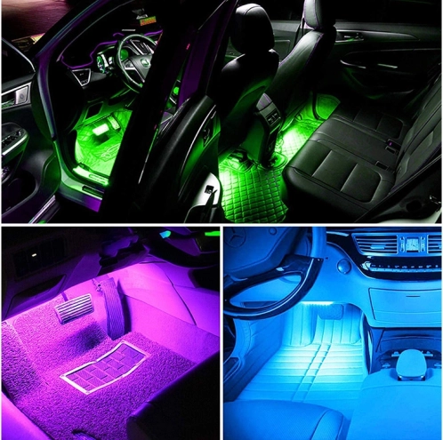 Forbedr atmosfæren i din bil med smart LED ambient belysning. Fire fleksible og vandtætte LED-strimler med SMD 5050 RGB-teknologi gør det nemt at ændre farver, lysstyrke og effekter. Med fjernbetjeningen kan du skifte mellem 8 faste farver, 4 hop-tilstande og musiktilstande, der reagerer på rytmen.