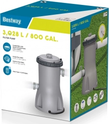 Bestway filterpumpe med en gennemstrømning på 3028 l/h kan flytte op til 3028 liter vand i timen. Det korrekte valg af filterpumpe er afgørende for dens ydeevne og effektivitet. Til korrekt funktion af pumpen kræves udskiftelige filtre. Et papirfilter er inkluderet i pakken og kan renses ved skylning under rindende vand. Det anbefales at skifte filter hver anden uge. Pumpen er nem at montere og bruge, og pakken indeholder instruktioner på dansk. Filterpumpen er en uundværlig del af poolens filtersystem, som hjælper med at holde vandet rent og sikkert.