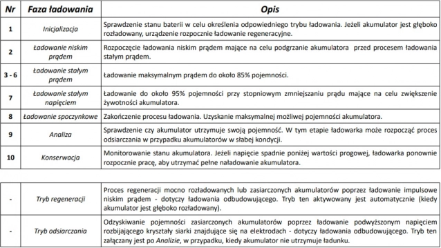 Valgbar strøm 1A/4A muliggør skånsom opladning af mindre akkumulatorer og hurtigere energitilførsel til større batterier. Integrerede beskyttelser mod kortslutning og overspænding samt frakobling af udgangen ved fejl sikrer maksimal sikkerhed. Brugervenlig betjening og desulfatering hjælper med at forlænge batteriets levetid.