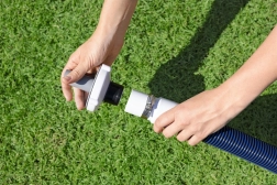 Den ni meter lange slange giver bekvem tilslutning af poolteknik selv i større haver.