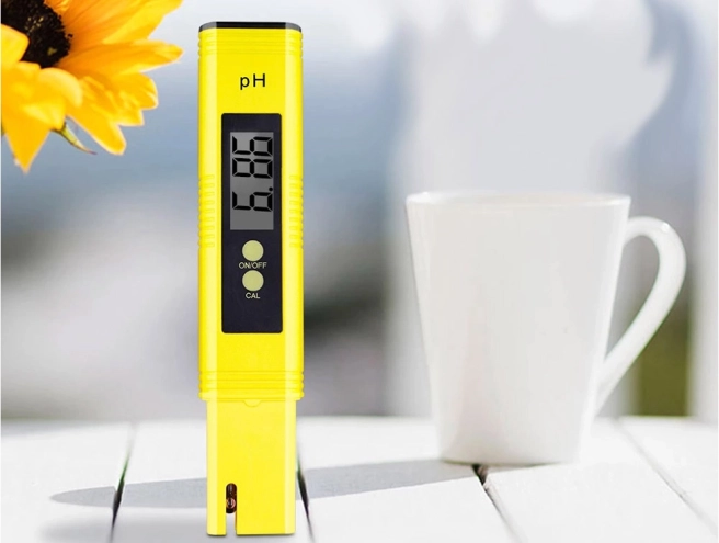 Med et tydeligt gult og sort design er vores pH-meter kompakt og let at transportere. Ideelt til daglig brug derhjemme eller i professionelle miljøer.