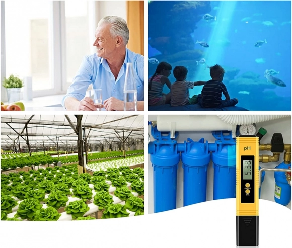 pH-meteret tilbyder præcis måling af pH i området 0,0 - 14,0 pH med en opløsning på 0,01. Det er et ideelt værktøj til at sikre kvaliteten af vand og andre væsker.