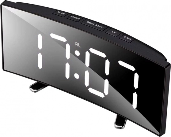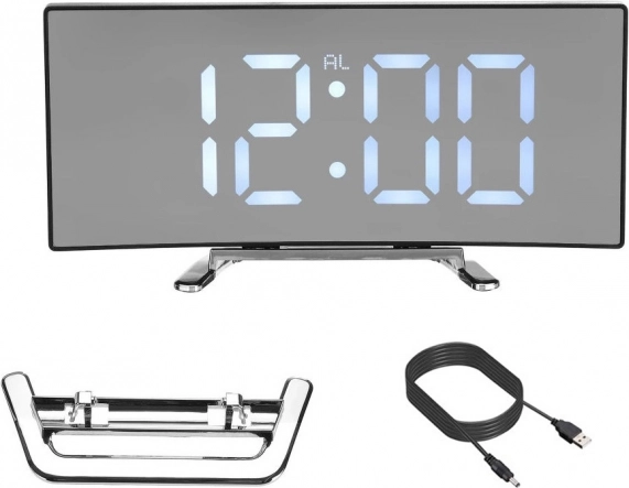 Stilfuldt digitalt vækkeur med stor LED-skærm, der viser tid, dato og temperatur, en praktisk snooze-funktion og nattilstand med reduceret lysstyrke. Takket være det spejlede display og det moderne design passer det perfekt på natbordet eller skrivebordet. Kan forsynes med USB-kabel eller 3× AAA-batterier.