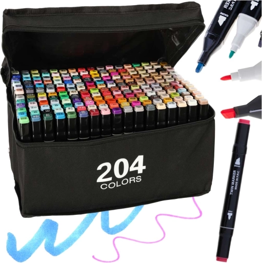 Med den omfattende palette på 204 nuancer får du alt til tegning, skitsering, skygge og farvelægning. Alkoholblækket blandes jævnt, muliggør nemt blending og er farveægte efter tørring, så det ikke tværer ud.