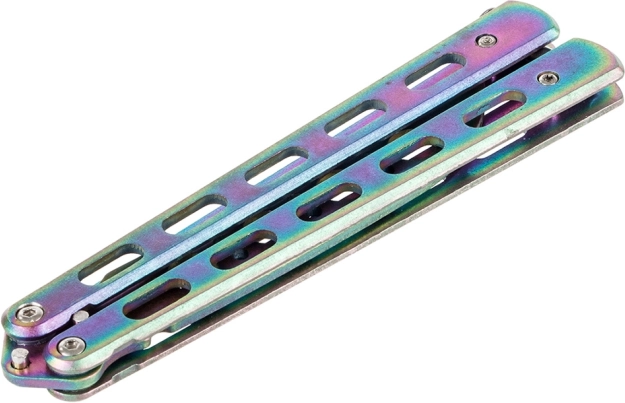 Det attraktive regnbueoverflade giver kniven et unikt udseende og stil.