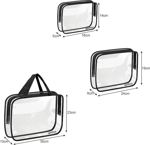 Sættet med 3 gennemsigtige tasker til kosmetik og småting hjælper dig med at holde orden i kufferten, rygsækken og badeværelset. De forskellige størrelser gør det nemt at opdele makeup, toiletartikler og rejseflasker. Det klare materiale gør sikkerhedskontrollen i lufthavnen hurtigere og gør det lettere at finde det, du har brug for.
