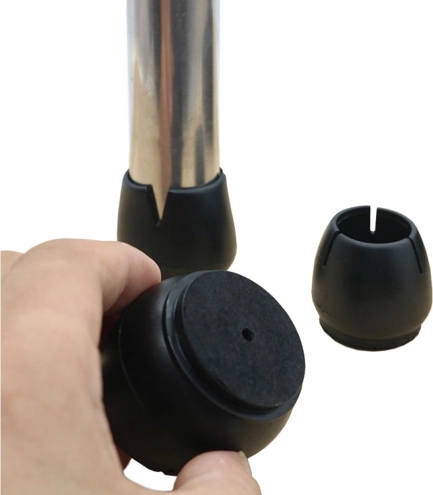 Disse universelle beskyttelseshætter er lavet af fleksibel og holdbar silikone, som tilpasser sig tæt til runde møbelben. Den integrerede filtpude på undersiden sikrer glat og stille bevægelse på gulvet uden at efterlade ridser.