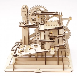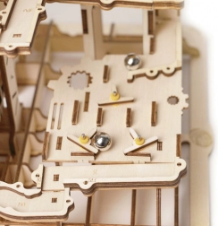 ROKR Climber er en håndsamlet kuglebane lavet af præcist laserudskårne trædele. Den elegante konstruktion med central “fæstning” udnytter gear, aksler og løftemekanismer, som fører kuglerne jævnt gennem gennemtænkte spor. Byggesættet udvikler teknisk tænkning, fantasi og finmotorik – og er samtidig en attraktiv designdekoration.