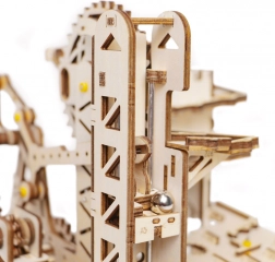 Modellen indeholder tårnfordeler, spiralramper, kran- og hjulløft, en kort rutschebane og smart placerede kontakter, der ændrer kuglernes rute. Sværhedsgrad er vurderet til 4/5; samling tager cirka 6–7 timer. Når du er færdig, skal du blot dreje håndsvinget og lade dig rive med af det dynamiske skue, som tydeligt demonstrerer STEM-principper.