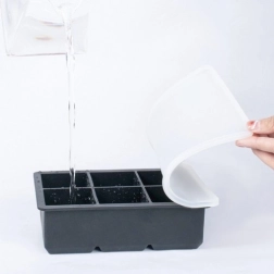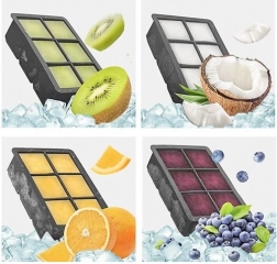 Transparente låg med præcist formet kant forhindrer spild og holder formen stabil i fryseren. Isen får derved en ensartet form.