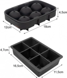 Sættet indeholder en form til 6 runde kugler Ø 4 cm og en form til 6 XXL-terninger 48 × 48 × 48 mm, begge med tætsluttende låg og beskyttende kanter mod spild. Silikonekonstruktionen sikrer nem udtagning, ensartede former og lang holdbarhed. Større isfigurer smelter langsommere, så drikke forbliver kolde længere uden unødig fortynding.