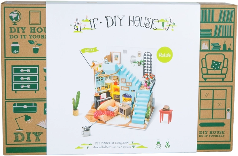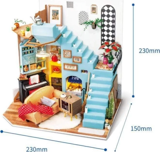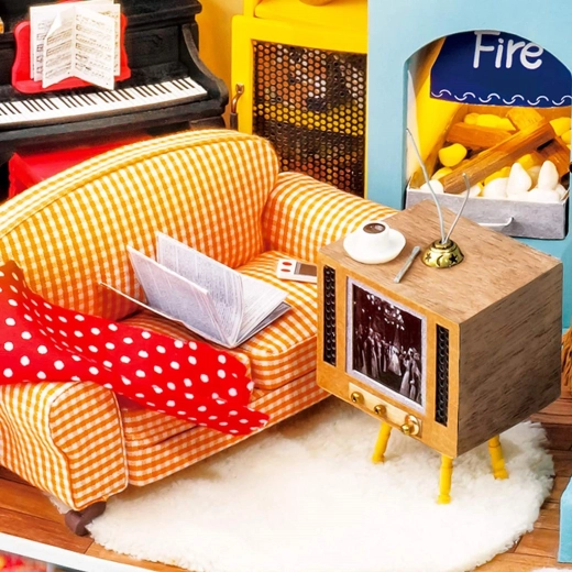 Dyk ned i en verden af detaljerede miniaturer, og byg en charmerende stuekrog med trappe, klaver, retro-tv og hyggelig siddeplads. ROLIFE-sættet guider dig trin for trin fra maling og limning af krydsfinerdele til installation af LED-lys, der giver modellen en varm atmosfære.