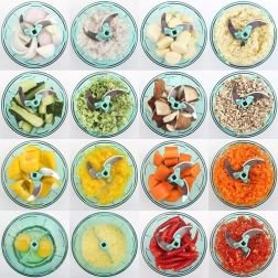 Apparatet er udstyret med firedobbelt rustfri stålkniv, der nemt evner at hakke enhver fødevare. De skridsikre fødder giver dig mulighed for at bruge hakkeren sikkert og stabilt.