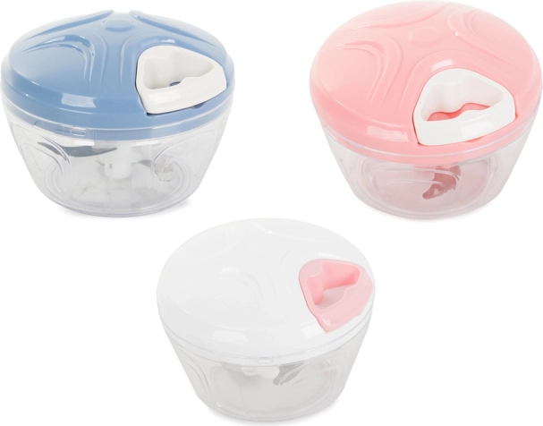 Denne innovative håndholdte skærer er den ideelle løsning til ethvert køkken. Det er nok blot at trække i snoren, og dens tre rustfri stålknive hakker hurtigt og præcist grøntsager, frugter, nødder og krydderurter.