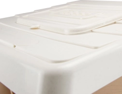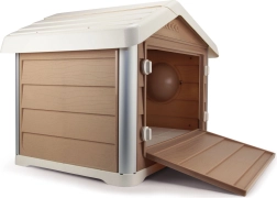 Bagvæggen kan sikkert klappes op og låses, hvilket forvandler huset til et åbent lysthus. Indvendigt er der mere lys og luft, og kæledyret har større komfort; samtidig får du nem adgang ved rengøring.