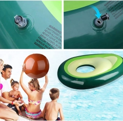 Den originale luftmadras formet som en moden avocado lyser op ved enhver pool og på stranden. Den aftagelige “sten” fungerer som en selvstændig bold til vandet og strandspil eller som en pude/rygstøtte, når du daser på vandet. Den åbne midte gør madrassen til en stabil ring til afslapning og svømmeøvelser.