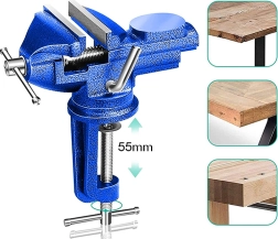 Spændesystemet med bred skrue og tryksskive garanterer fast montering på arbejdsbordet (anbefales til tykkelser op til ca. 55 mm). Takket være den robuste udførelse og kvalitetsbakker er skruestikken velegnet til arbejde med metal og andre materialer i både hjemmeværkstedet og professionelle omgivelser.