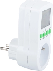 Den digitale timer til stikkontakt er ideel til lamper, opvarmning, akvarier, ventilatorer eller opladere. Takket være 16 tænd/sluk-programmer kan du nemt opsætte en ugentlig plan og lade timeren arbejde for dig. Et integreret batteri bevarer indstillingerne selv ved strømafbrydelse, og det overskuelige LCD-display med enkle knapper gør opsætningen hurtig.