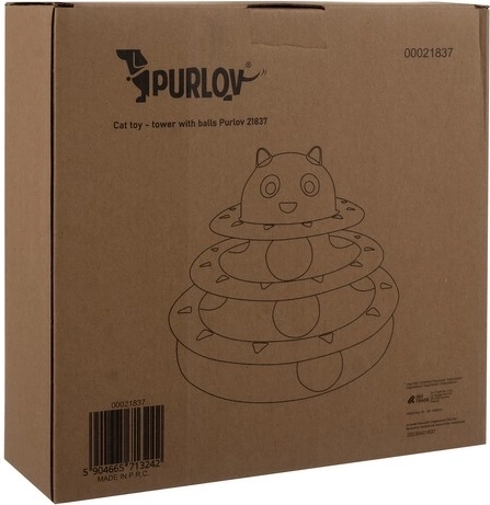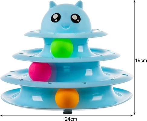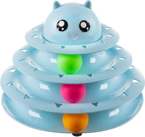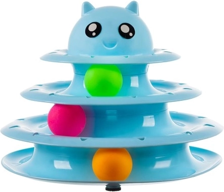 Tårnet består af tre niveauer, hvorpå der er placeret farvede bolde. Boldene roterer nemt og tiltrækker kattene til interaktion. Tårnet er lavet af holdbart plastik, der holder længe.