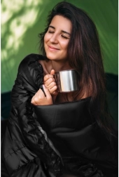 Den let justerbare hætte giver ekstra beskyttelse og komfort, der forhindrer varmetab. Den er anvendelig ikke kun til camping, men også til vandreture, bjergbestigning eller til festivaler. Soveposen er lavet af høj kvalitet materiale og er vandafvisende og antiallergisk, hvilket sikrer lang levetid og en behagelig følelse under søvn.