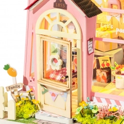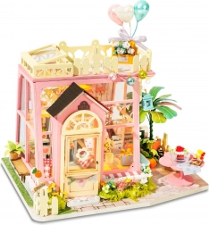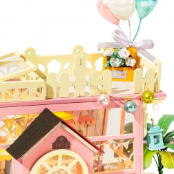 Dette detaljerede DIY-sæt lader dig samle din egen miniaturebutik i pastelfarver med fine accessories, balloner og blomster. Det integrerede LED-lys skaber en behagelig stemning om aftenen og forvandler modellen til en charmerende dekoration. Takket være det komplette tilbehør i pakken kan du gå i gang med det samme.