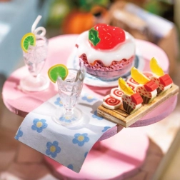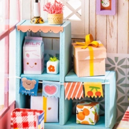Efter samling får du en smuk pastelbutik, der skiller sig ud på hylden eller skrivebordet. Ideel til samlere af miniaturer og som gave.