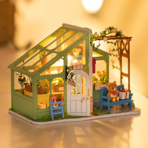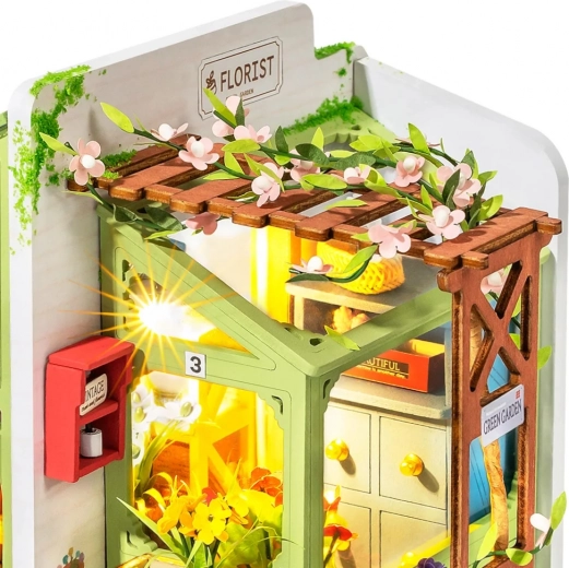 Træd ind i miniaturernes poetiske verden, og skab din egen blomsterbutik med bænk, postkasse og farverige blomster. Modellen udmærker sig med realistiske tilbehør, trækonstruktion og behagelig LED-belysning, som efter færdiggørelse forvandler ethvert hjørne af hjemmet til en fortryllende dekoration.
