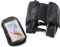 Består af dobbelt lomme til telefon og to netlommer.