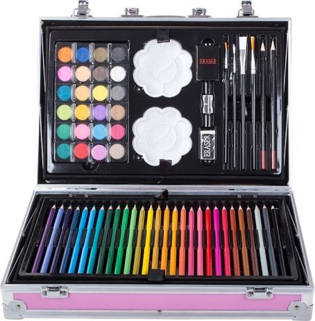 Alle nødvendige redskaber samlet til maling og tegning. Fra farveblyanter til akvareller, sættet indeholder alt nødvendigt.